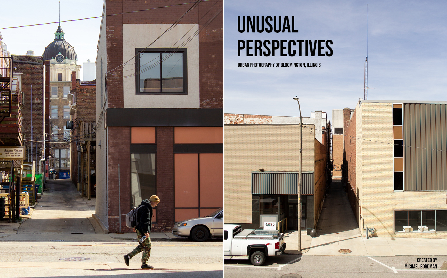 Photobook — Student project created to document different areas of Bloomington, Illinois. Created with Adobe Indesign, Adobe Lightroom and Adobe Photoshop.